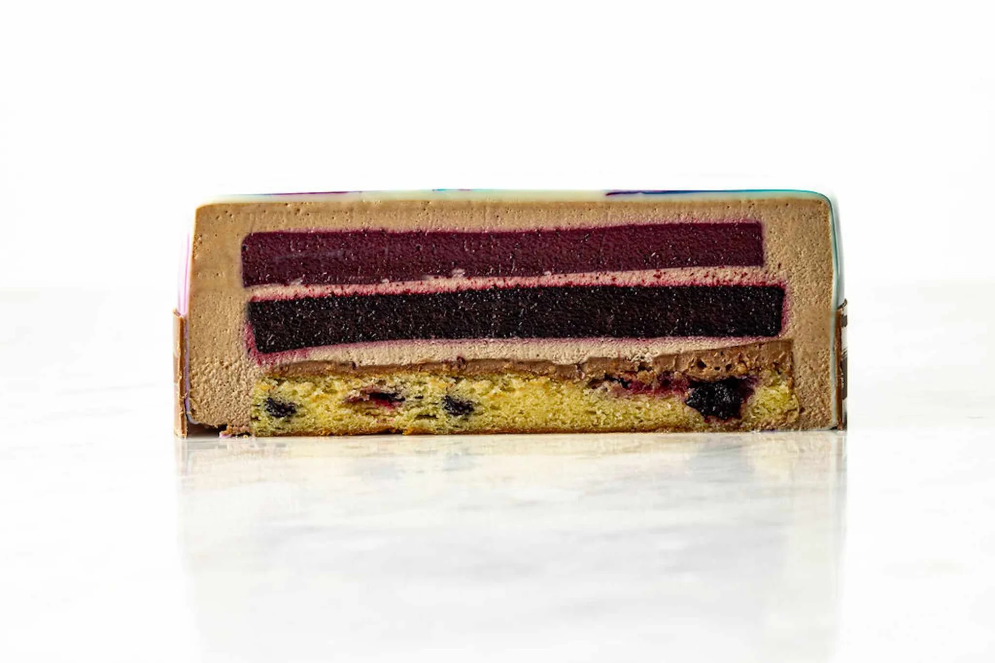Sukkerbrød av sjokolade, solbærsyltetøy, solbærkrem, og mousse laget av melkesjokolade.